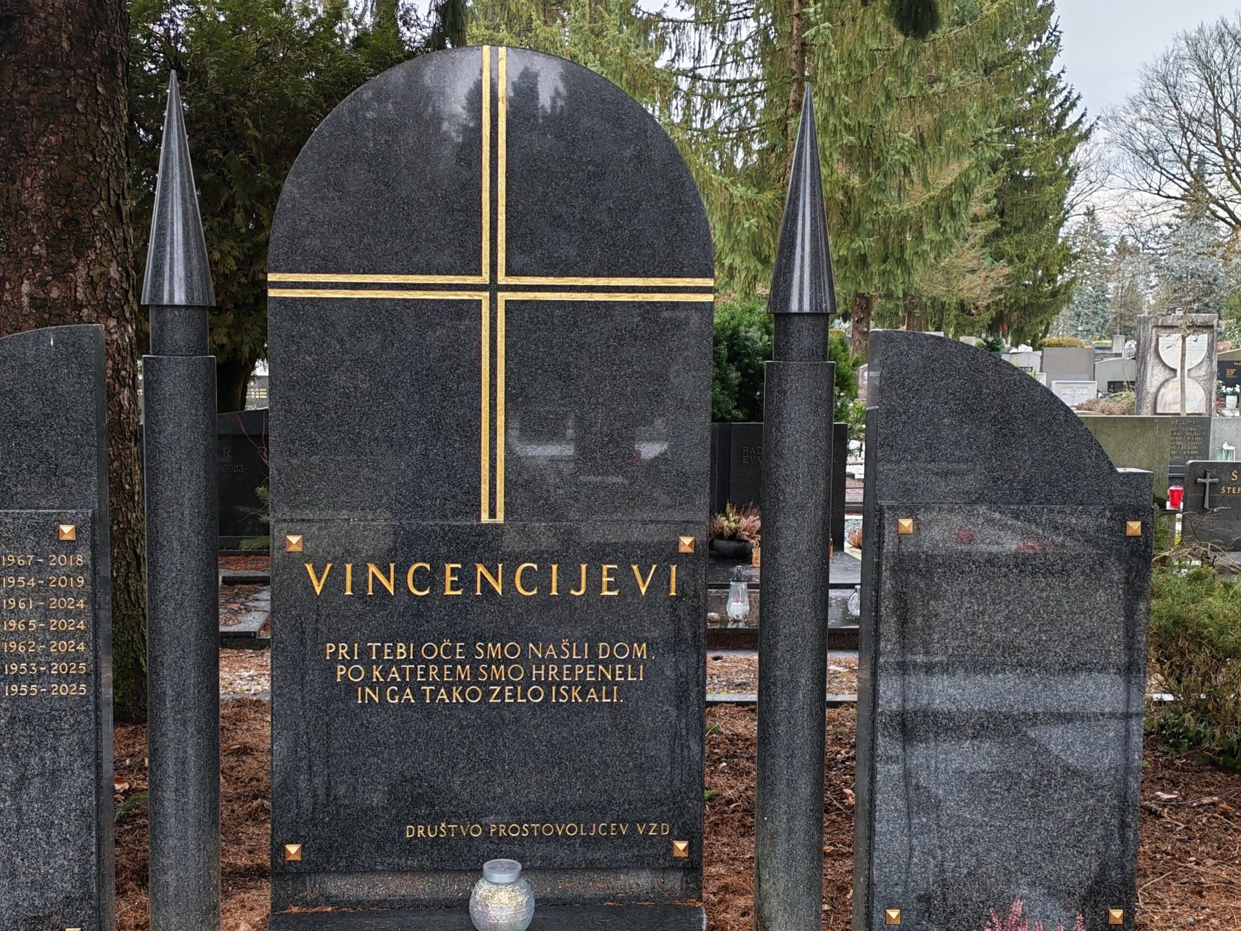Že vrsto let poskrbimo tudi za dostojen pokop umrlih brezdomcev. Na ljubljanskih Žalah smo najemniki groba, ki nam ga je odstopila Nadškofija Ljubljana, včasih pa je bil to grob sester karmeličank. Grob smo uredili z novimi ploščami in napisom: »Vincencijevi – Pri tebi Oče smo našli dom, po katerem smo hrepeneli in ga tako zelo iskali.« Do danes smo v grob pokopali sedem brezdomcev. Ob smrti skušamo poiskati svojce in jih obvestimo o slovesu. Pogovori s sorodniki so poseben izziv, saj smrt v njih razkrije veliko bolečine, tudi zamer in nerazumevanja. Zelo dragoceno je, da se svojci pridejo posloviti, ne glede na to, v kakšnih odnosih so bili s pokojnikom. Nekateri pokojnika pokopljejo v družinski grob, drugi tega ne zmorejo ali nimajo možnosti, zato jim pomagamo. Pogosto tudi sami poravnamo stroške pogreba, saj ne želimo, da bi bil pokojnik zgolj raztresen brez slovesa.